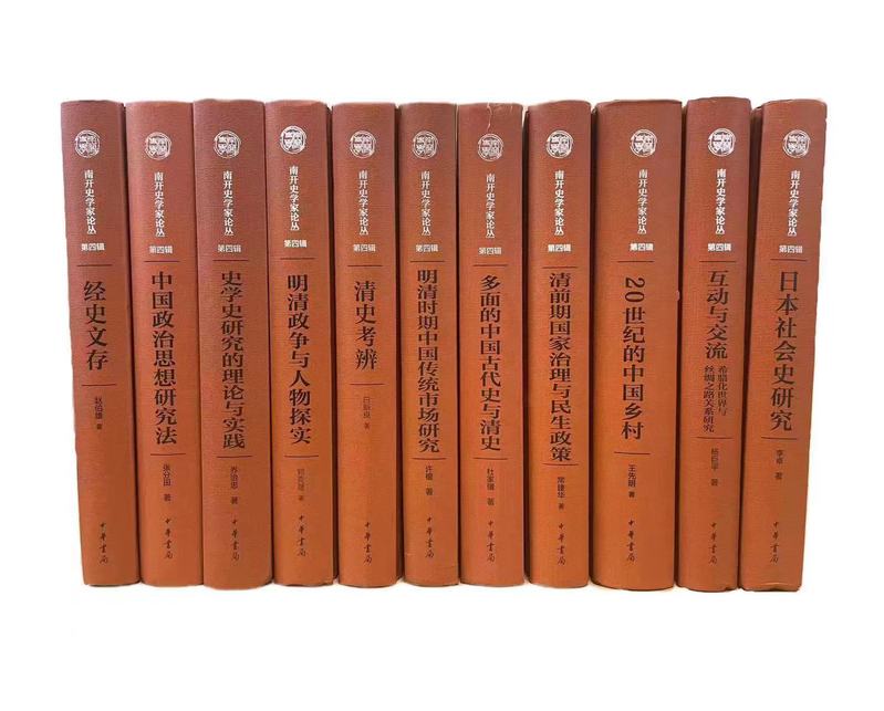 《南开史学家论丛》第四辑共计11册,中国史学科的著作有《经史文存》(赵伯雄著)、《中国政治思想研究法》(张分田著)、《明清政争与人物探实》(郑克晟著)、《清史考辨》(白新良著)、《多面的中国古代史与清史》(杜家骥著)、《明清时期中国传统市场研究》(许檀著)、《清前期国家治理与民生政策》(常建华著)、《史学史研究的理论与实践》(乔治忠著)、《20世纪的中国乡村》(王先明著),世界史学科的著作有《日本社会史研究》(李卓著)、《互动与交流:希腊化世界与丝绸之路关系研究》(杨巨平著)。第四辑论丛的编务,由江沛、余新忠前后两任院长接续主持,历时四年终得圆满完成。