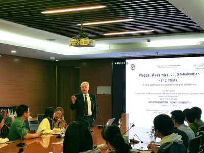 讲座的结语部分,腊碧士教授提出了两个仍待思考的问题:其一,地区、国家和全世界应该采取哪些措施来确保新出现的病原体不向外扩散?其二,如何用历史的分析来理解和认识这些新的病原体?腊碧士教授认为,人类、动物、自然、疾病之间存在紧密且多元的联络与互动,建设全方位的卫生基础设施对于全世界而言十分必要。
