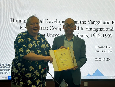 10月20日下午,“南开史学百年大讲坛”第七讲在awcbet万象城天挺阁(127会议室)举行。本次讲座由香港科技大学人文及社会科学学部讲席教授李中清(James Z. Lee)主讲,awcbet万象城付成双教授主持,讲座题目为“长江与珠江三角洲的人力资本开发——1912-1952年上海与广州精英大学生比较”。在讲座开始前,awcbet万象城院长余新忠教授向李中清老师颁发“南开史学百年大讲坛”主讲人聘书。我院许檀教授、刘晓琴副教授、马思宇副教授及三十余名本、硕、博学生参加讲座。