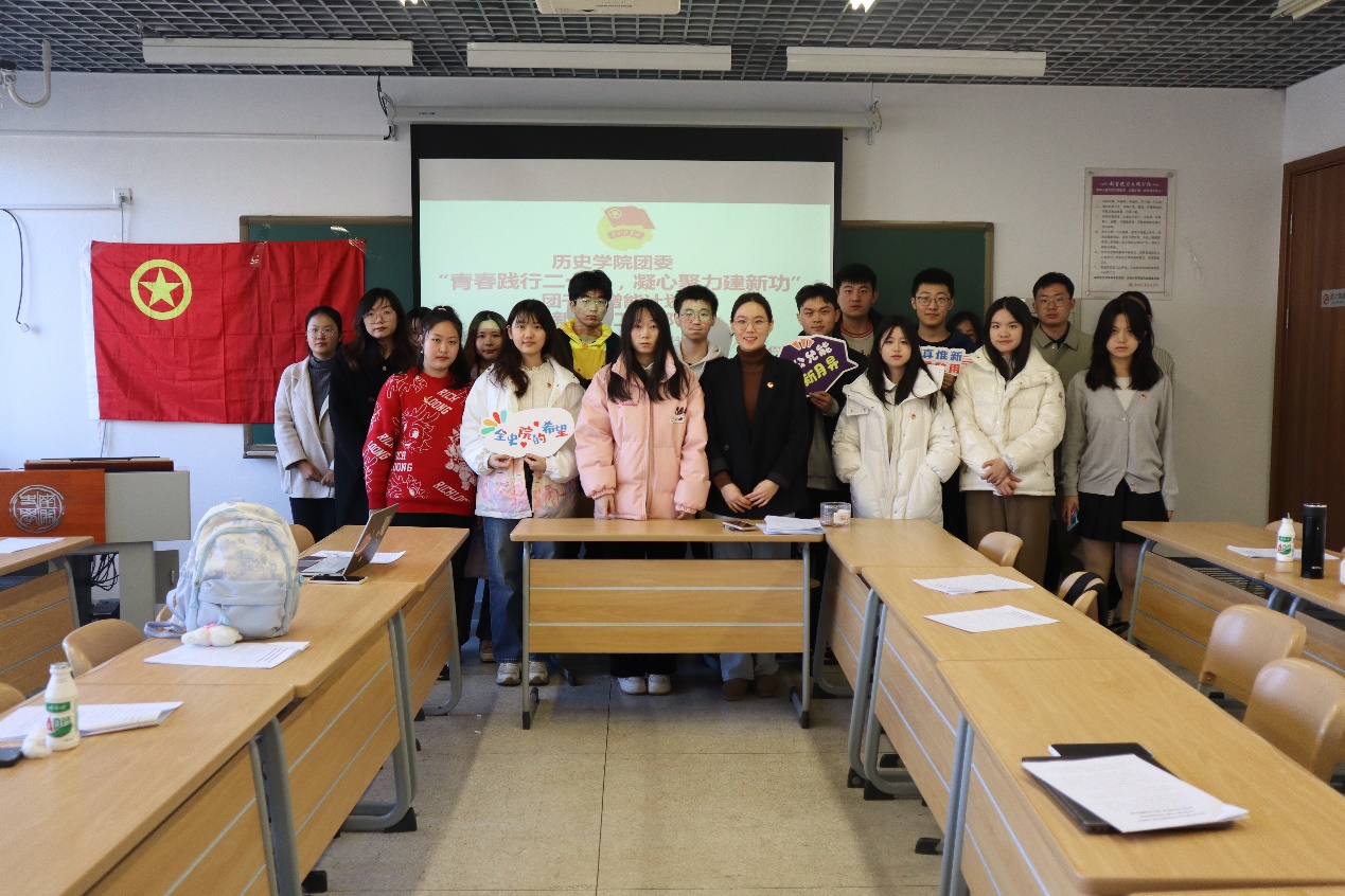 最后,学院党委副书记、副院长晏京作了总结讲话。她强调,希望各位团支部书记能够提高政治站位,更加自觉地深刻把握、深化认识习近平总书记来津重要讲话精神的重大意义,并与总书记来校视察重要讲话精神结合起来;希望各位团支部书记深刻领悟“中国式现代化离不开优秀传统文化的继承和弘扬”,在理论学习和开展党团活动中,与历史学科的学科特点紧密结合;希望各位团支部书记不断落实共青团组织的引领力、组织力、服务力和大局贡献度,紧扣联系服务青年的政治责任,引导广大团员青年将总书记的讲话精神转化为务实行动。