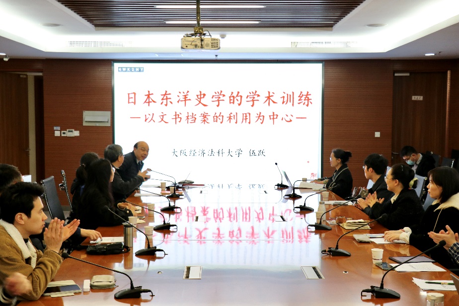 本次讲座,伍老师论及日本历史教育学科的设置、各级学生的课程与培养方式、文书档案的研读方法,并以夫马进先生为例,说明如何利用文书档案开展学术研究,视野宏阔,深入浅出。同学们纷纷表示获益良多,讲座在大家热烈的掌声中结束。