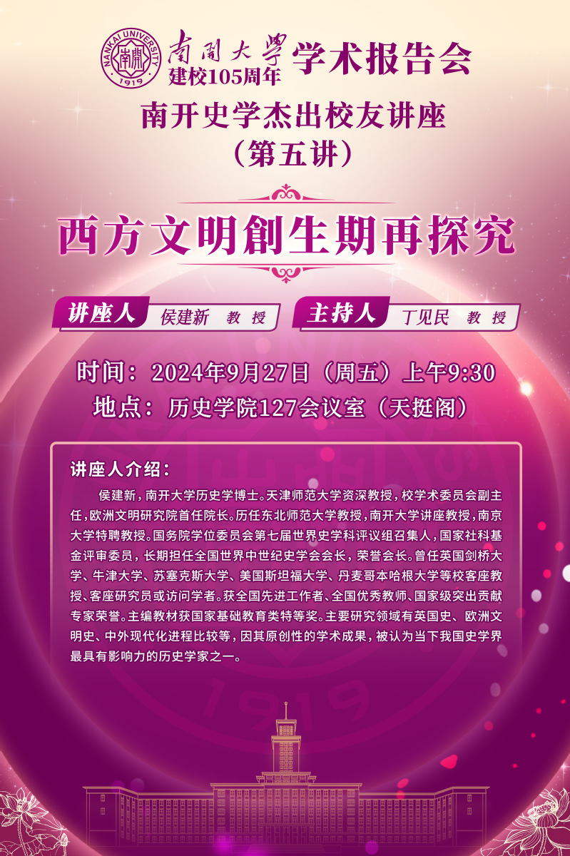 讲座预告|南开大学建校105周年学术报告会暨南开史学杰出校友讲座(第五讲)