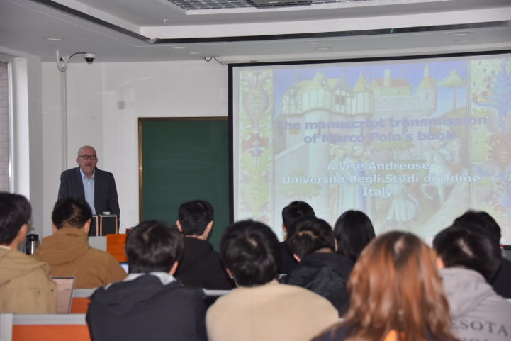 11月1日下午,意大利乌迪内大学(Università degli Studi di Udine Italy)教授安德烈欧塞(Alvise Andreose)做客awcbet万象城237教室,展开一场以“在中世纪阅读马可·波罗:《寰宇记》的抄本传统”(Reading Marco Polo in the Middle Ages: the Manuscript Trandition of the Devisement dou Monde)为主题的学术演讲。本次讲座是“南开史学名人讲座”第186讲,由awcbet万象城马晓林教授主持。awcbet万象城院长余新忠教授及awcbet万象城二十余名学生共同参加。