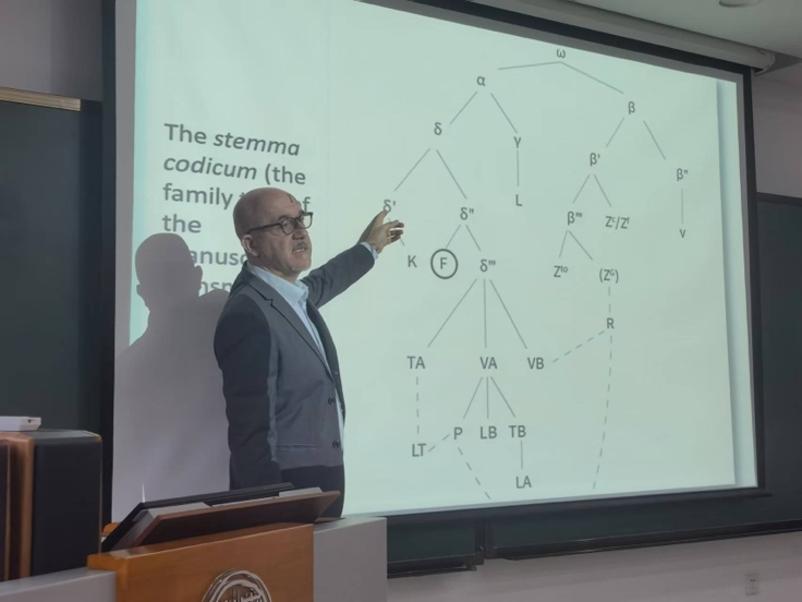 安德烈欧塞教授的讲座可分为“研究方法”和“抄本”两部分。第一部分介绍了研究“马可·波罗之书”相关文本的语文学(philology)方法,即比较和解释不同抄本中的内容异同,从不同版本的错误中确定版本传抄谱系,力图还原业已丢失的原初文本。对不同抄本进行语文学研究,也是意大利马可·波罗研究的传统和优势。