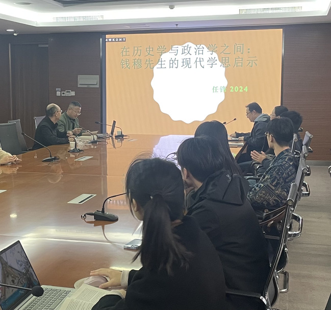 讲座伊始,任锋教授大致介绍了钱穆先生的主要作品,以及大陆学界对钱穆先生的关注。任教授指出,钱穆先生并不仅仅是一位纯粹书斋式的历史学家,其作品具有强烈的现实关怀——中国的现代立国,是钱穆深入古史、终生求索的关键思想推力。