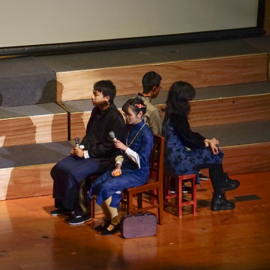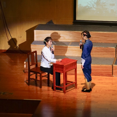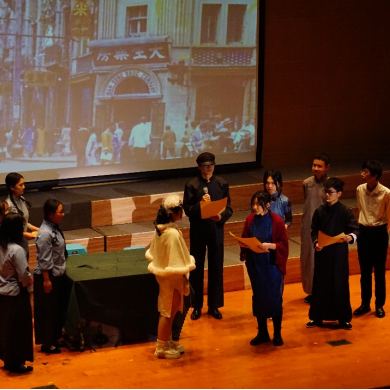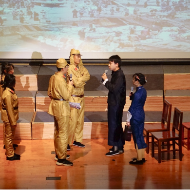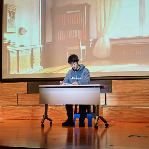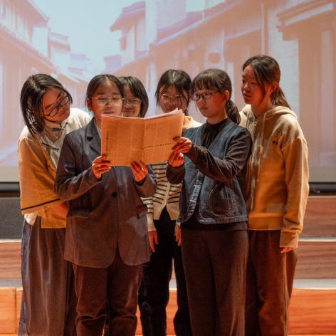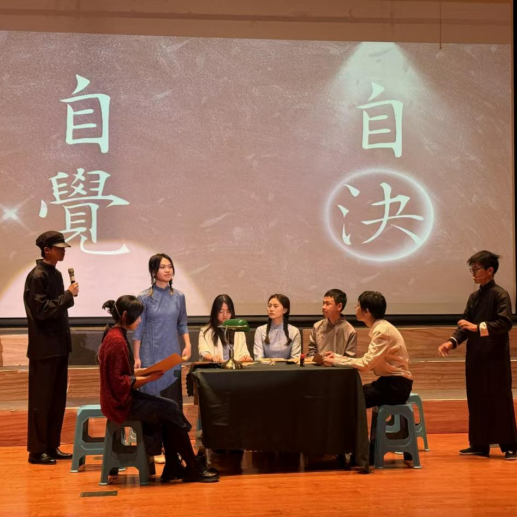 三班的话剧《如火焰般——信仰青年觉悟》,展现了在二十世纪初,中国深陷混沌黑暗的背景下,周恩来、邓颖超、马骏、郭隆真等革命先烈率先觉醒的生动图景。五四运动浪潮将他们汇聚,他们于觉悟社中,研习新论,传播新潮。他们以青春之勇,怀同一壮志,让革命火种播撒,为沉睡之中国启光明序章。演员们生动再现了那群充满热血的青年,他们联合学生力量,唤醒被封建思想禁锢的人们,成为中国革命的先驱。话剧末尾时响起学生们的合唱,歌声仿佛一股热流,跨越百年注入我们心中。