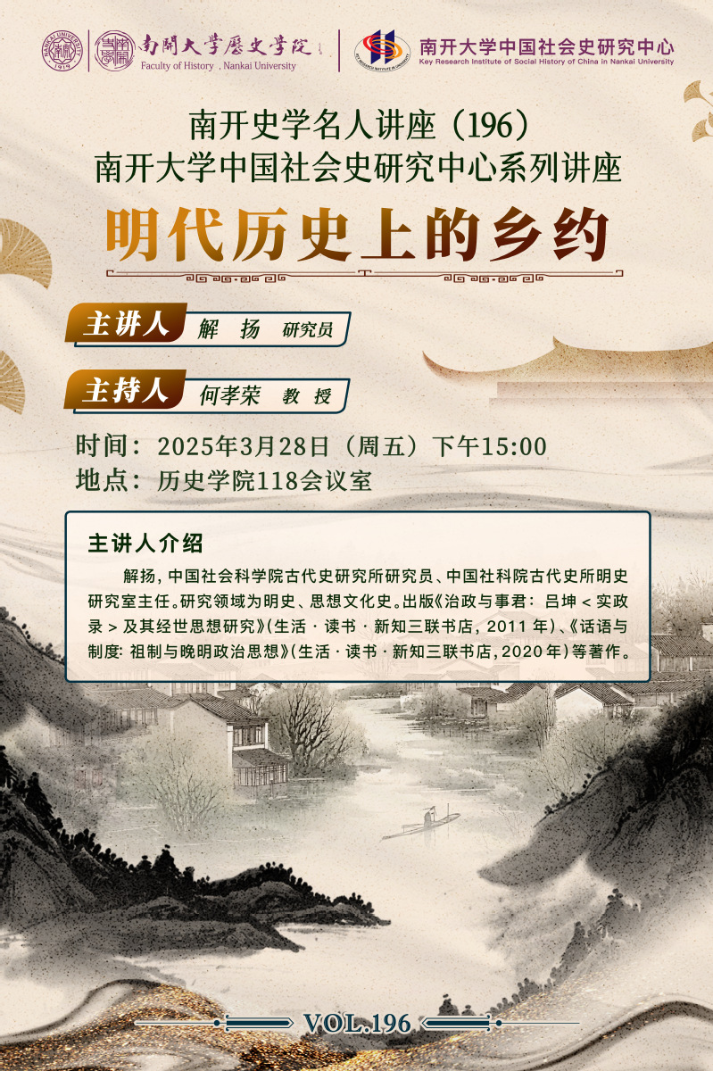 南开史学名人讲座(196)预告