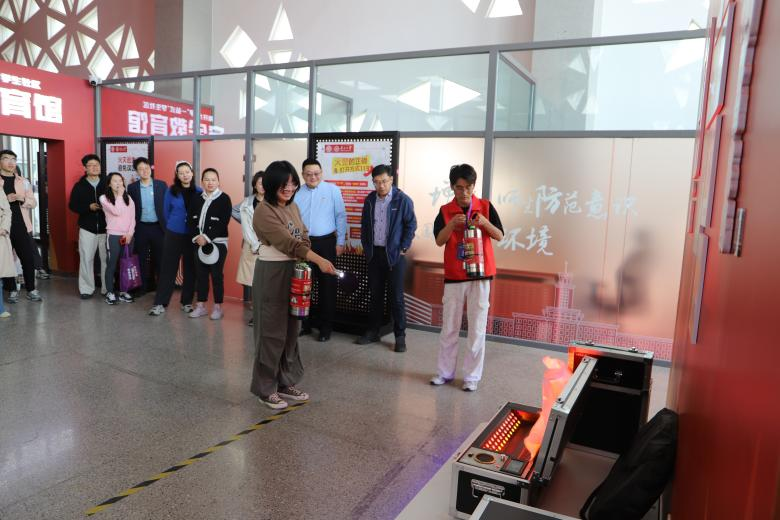 当日上午,师生一行首先前往安全教育馆。活动现场,志愿者围绕防火、禁毒、反诈、交通等实用领域开展宣讲,着重针对高校宿舍消防安全管理、电动车规范充电等校园高频风险环节进行案例剖析与防范指导。党员同志分组体验二氧化碳灭火器操作,佩戴眩晕眼镜感受酒驾危害,并学习海姆立克急救法和心肺复苏操作规范。