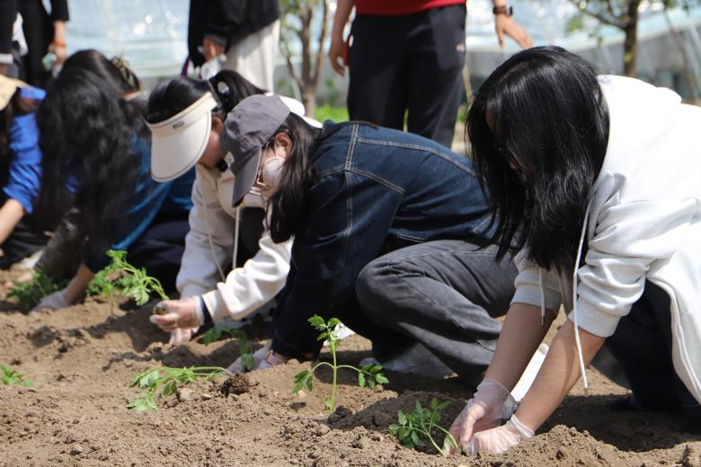 在强化公共安全意识的同时,活动进一步聚焦粮食安全这一国家安全基石。随后,师生一行前往南开大学津南校区劳动实践田开展农作劳动。在田间,师生们齐心协力,整地松土,开沟起垄,栽种培土,浇水覆膜,完成西红柿、辣椒、黄瓜种植。23级中国史硕士生简也表示,亲手种植更加体会到了农田劳作的艰辛、粮食生产的不易,今后在生活中要进一步杜绝浪费,担当起宣传责任,守护粮食安全。