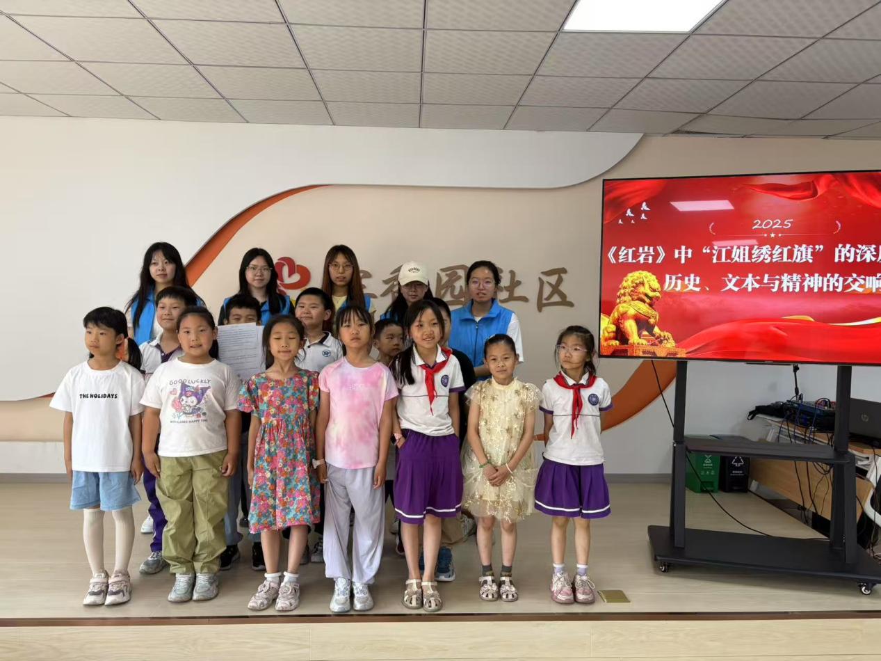 活动现场,awcbet万象城学生代表以沉浸式教学开启红色教育。在《红岩》经典片段品读环节,支部成员选取“绣红旗”章节,通过经典影片赏析、文字深度解读等形式,生动还原江姐等革命先烈在狱中缝制红旗的场景。“线儿长,针儿密,含着热泪绣红旗……”同学们饱含深情的朗诵,让在场12名小学生深刻感受到革命年代共产党人对理想信念的执着追求。随后开展的《小英雄雨来》情景短剧表演,更是将活动推向高潮。孩子们在学生代表的指导下,生动演绎了雨来智斗日寇、传递情报的经典情节,通过“智取哨卡”“情报传递”等互动环节,将爱国主义精神具象化呈现。