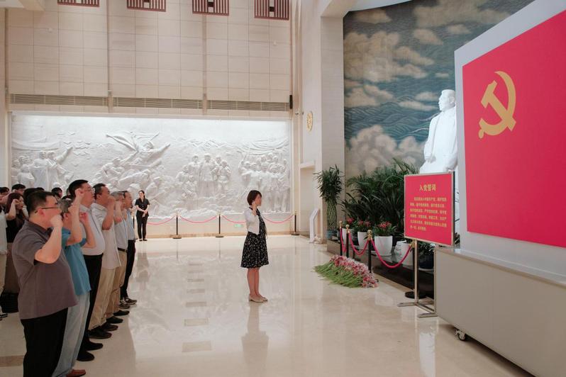 抵达纪念馆瞻仰厅后,师生在周恩来、邓颖超同志的雕像前重温入党誓词,集体宣誓。全体党员面向党旗,高举右拳,以铿锵誓言表达对党的忠诚与为共产主义事业奋斗终身的坚定决心。