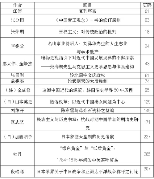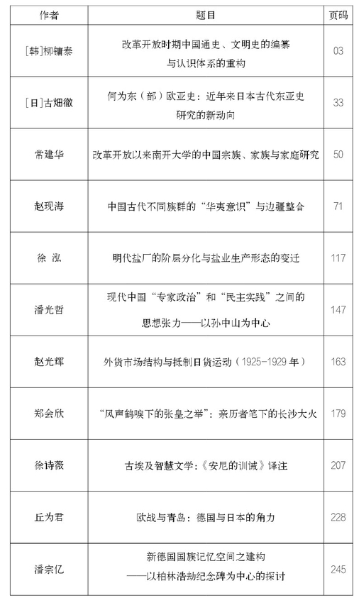 《南开史学》往期目录(2019年)