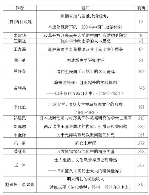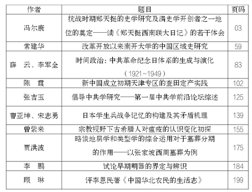 《南开史学》往期目录(2020年)