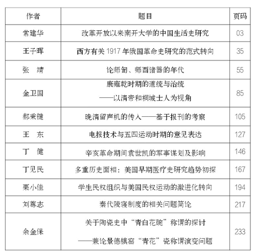 《南开史学》往期目录(2021年)