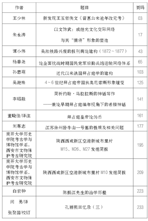 《南开史学》往期目录(2024年)